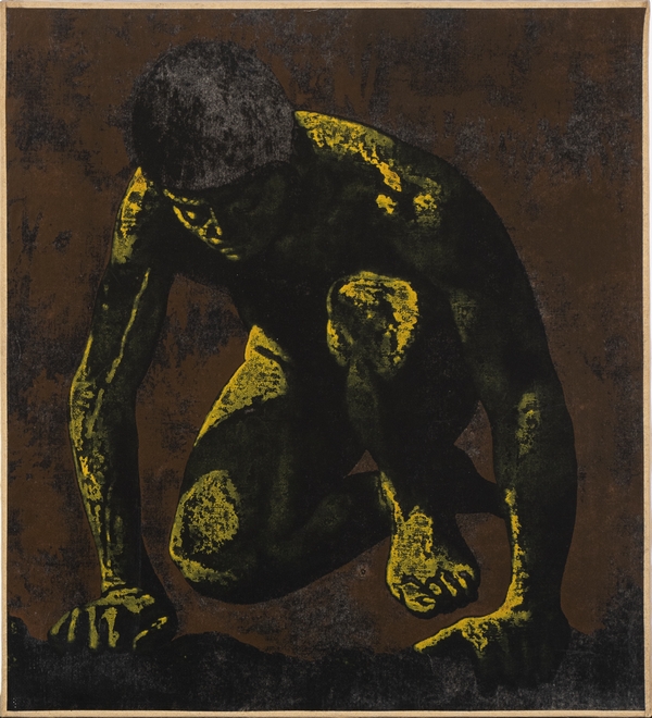 In ordine cronologico la prima opera qui esposta è un disegno del 1940 che raffigura un Atleta: ci racconta un artista memore delle ricerche del periodo giovanile, dell’epoca dell’École de Rome. Il tratto è pulito, preciso. La figura solenne dell’Atleta è spogliata da ogni marziale retorica. L’uomo è proposto nella sua corporea natura umana, offre le terga allo sguardo dell’osservatore.